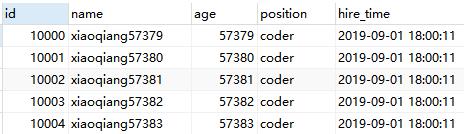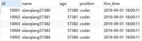 ) ENGINE=InnoDB AUTO_INCREMENT=136326 DEFAULT CHARSET=utf8 COMMENT='员工表'