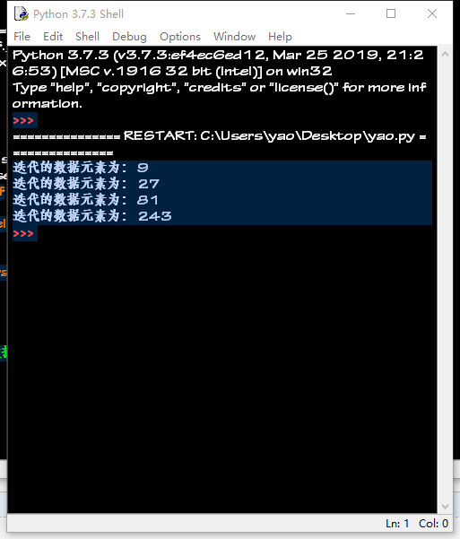 迭代器对象可以使用常规的for语句或while语句进行遍历。例如: