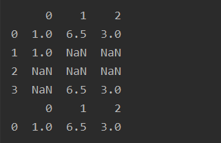 data2 = pd.DataFrame([[1., 6.5, 3.], [1., NA, NA], [NA, NA, NA], [NA, 6.5, 3.]])