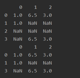 data1 = pd.DataFrame([[1. ,6.5, 3.],[1., NA, NA],[NA, NA, NA],[NA, 6.5, 3.]])
