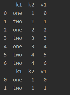 print(data.drop_duplicates(['k1','k2'],keep='last'))