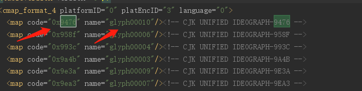 1、获取自定义字体和正常字体的映射表,比如:9F92对应的数字是2,9EA3对应的是1。