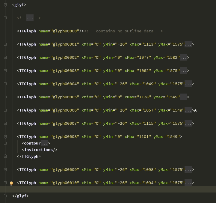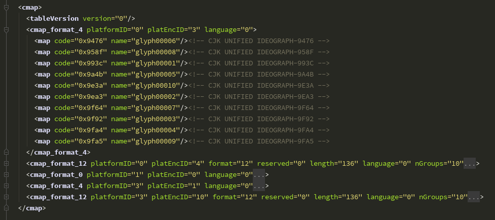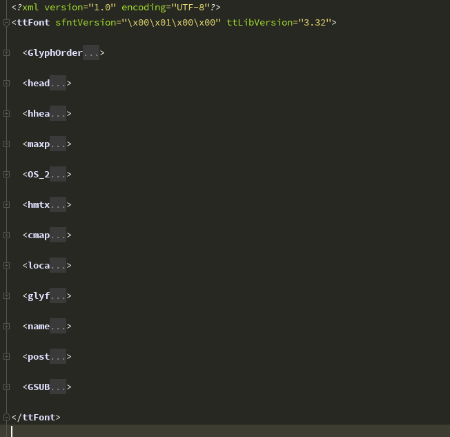 先来看下ttf文件中有哪些信息,直接打开ttf文件那当然看不了,把它转换成xml文件就可以查看了