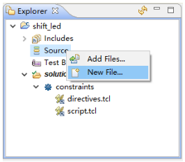 Step3:点击Finish,出现如下界面。右单击Source,选择New file,添加一个设计源文件。