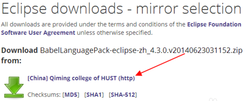 1到Eclipse的官网上下载汉化语言包。打开语言的网页后,根据获取到的版本号点击选择要下载的语言包,这个例子中的Eclipse的版本为Kepler,就点击Kepler.图