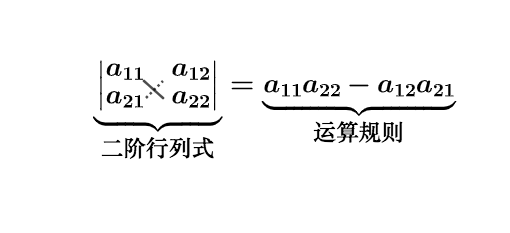 同济版《线性代数》的第一单元就是介绍行列式,首先介绍了二阶行列式代表如下算法: