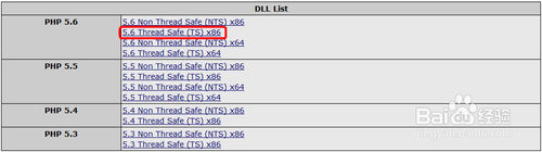 我使用的WAMP环境为32位版本,所以选择“5.6 Thread Safe(TS) x86”一项。