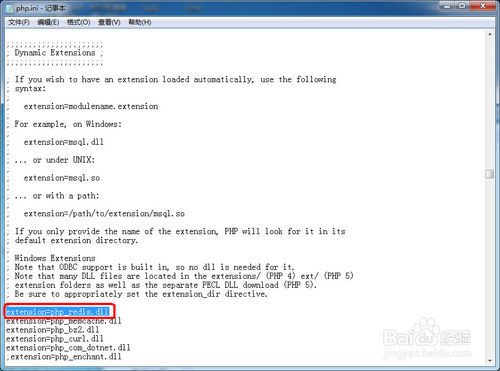 在打开php.ini文件编辑中查找“extension=”类似开头的内容。例如:extension=php_bz2.dll。