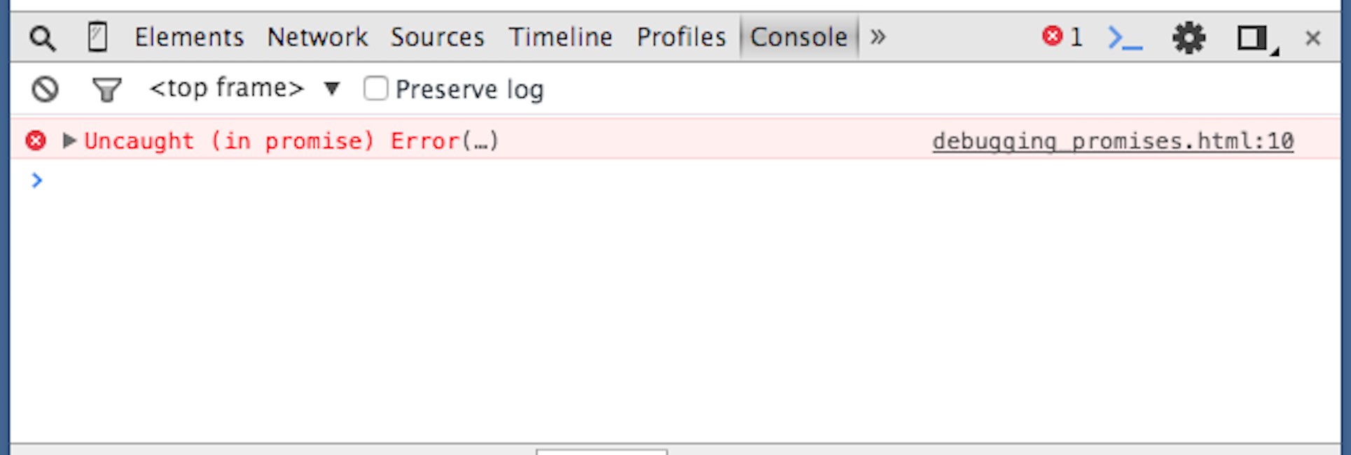 当你将数个 Promise 方法链式调用时,你可能会无心之中忽略错误。看实例: