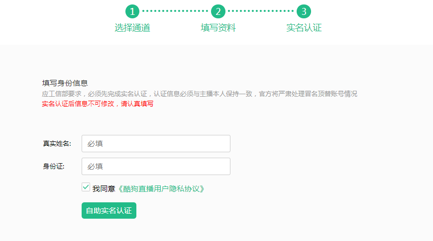 如果你选择个人入驻,人脸识别通过后即可开播。