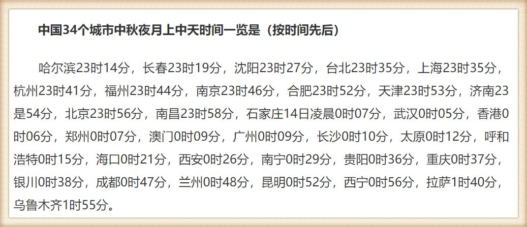 新鲜出炉的 《全国中秋赏月地图》 ,