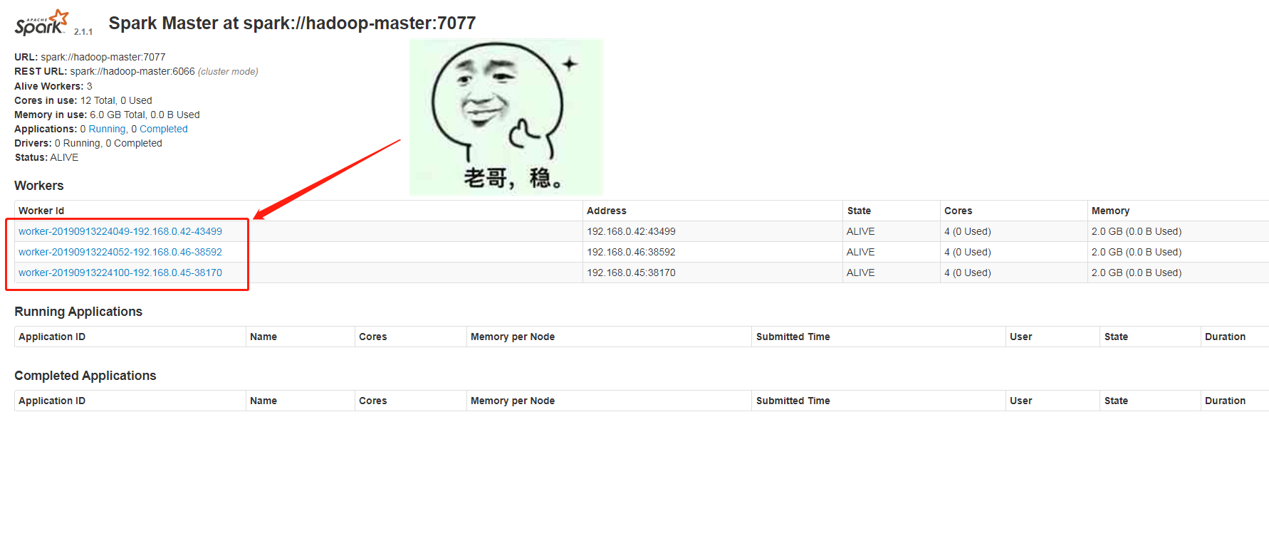 但是我打开 hadoop-master:8080 web界面却只能看到一个workers,如图
