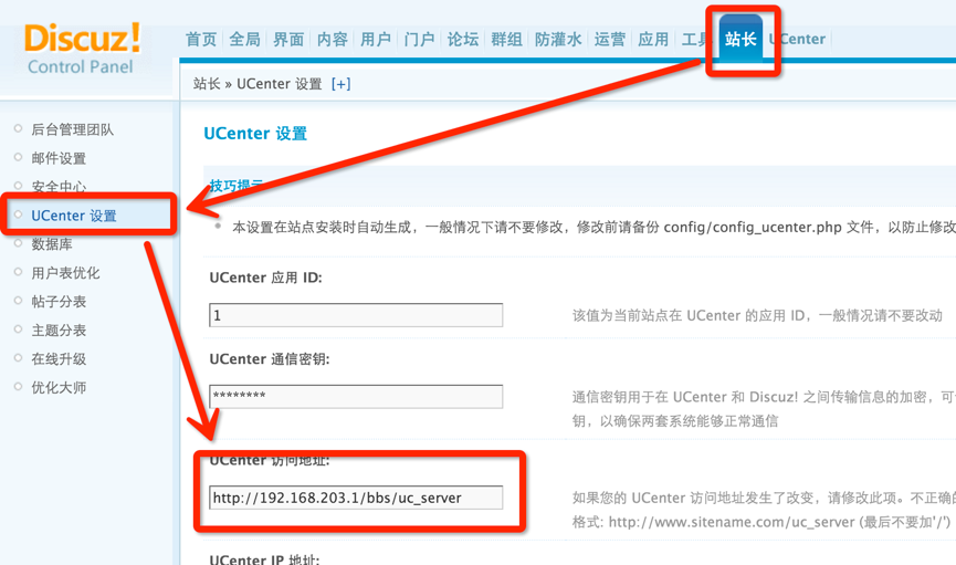 接下来,我们要将要配置我们的WEB程序,在配置WEB程序之前我们先要确认一下UCenter的地址: