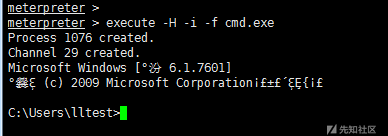 execute -H -i -f cmd.exe # 创建新进程cmd.exe,-H不可见,-i交互