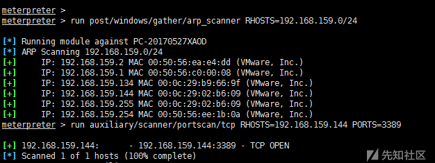 run post/windows/gather/arp_scanner RHOSTS=192.168.159.0/24