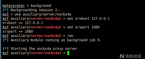autoroute添加完路由后,还可以利用msf自带的sock4a模块进行Socks4a代理