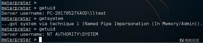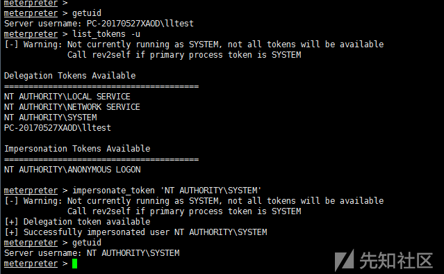 或者impersonate_token NT\ AUTHORITY\\SYSTEM #不加单引号 需使用\\