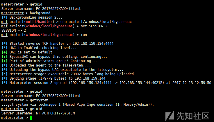impersonate_token 'NT AUTHORITY\SYSTEM' #假冒SYSTEM token