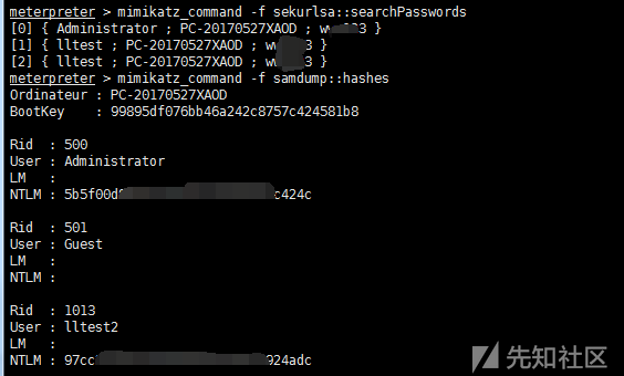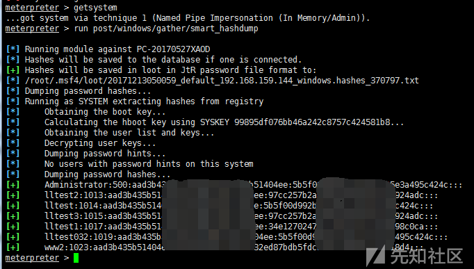 run post/windows/gather/smart_hashdump #从SAM导出密码哈希