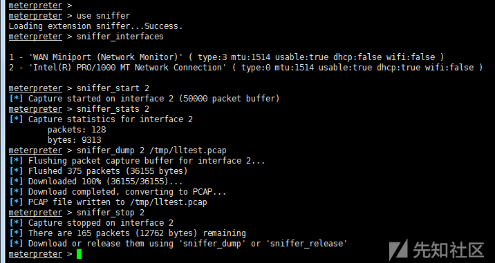 sniffer_dump 2 /tmp/lltest.pcap #导出pcap数据包