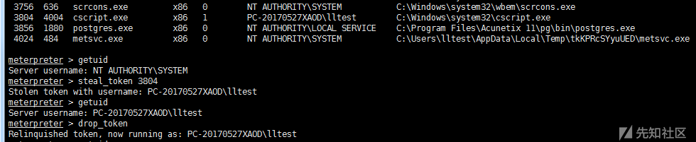 steal_token <pid值> #从指定进程中窃取token 先ps