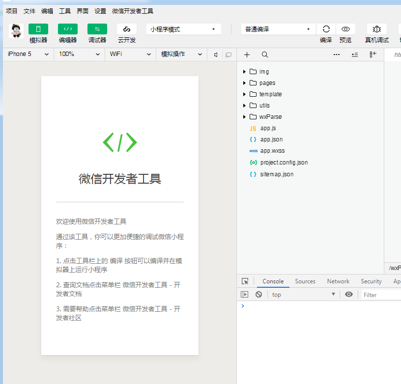 打开微信小程序开发工具后,首先我们要做的是先吧小程序的前段页面写好,也就是小程序的wxml文件。