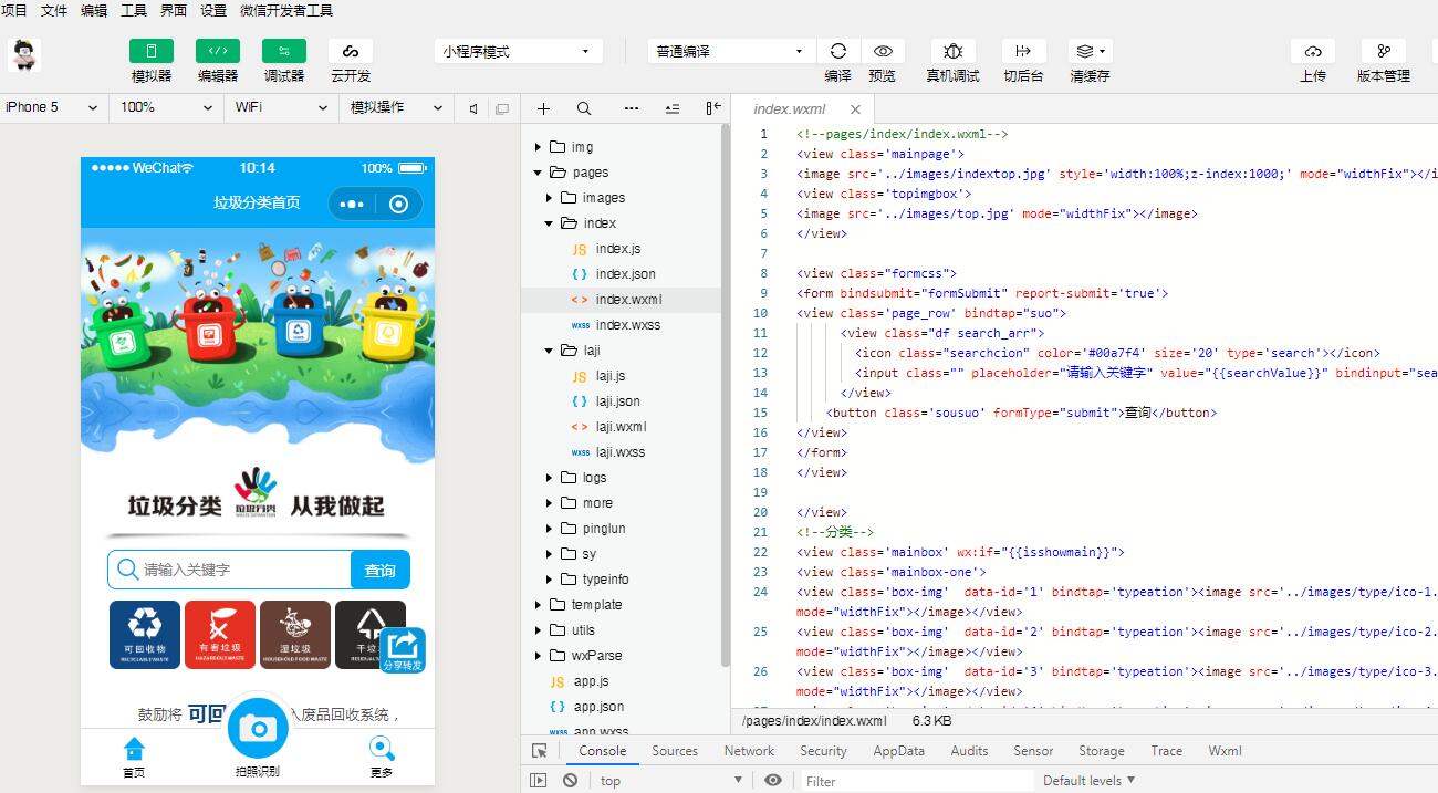 微信小程序的开发熟悉的朋友都不陌生,开发工具那些这里就不讲了,主要就讲一下垃圾分类小程序的垃圾查询功能代码的实现。