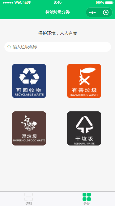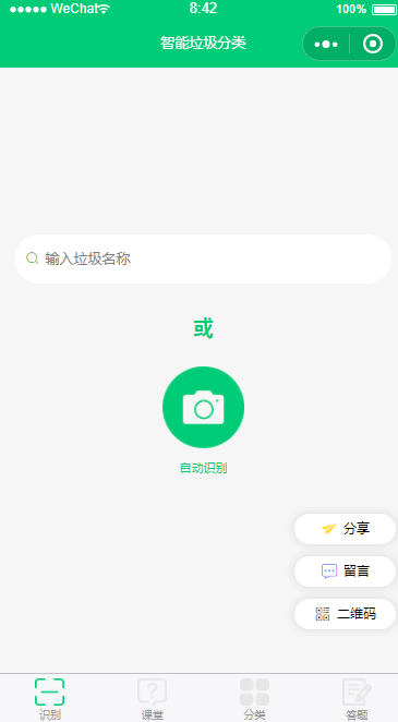 这是一个完整的已经线上运行的垃圾分类小程序,点击可查看源码,可随意 star。也可以扫描下方的小程序码直接体验。
