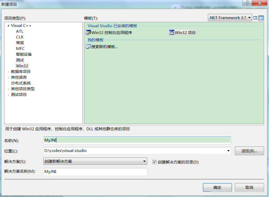 4. 在Visual Studio中新建MyJNI项目