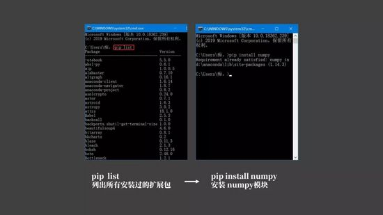 在终端执行 pip install xxxx(numpy) ,就可以安装对应的库。