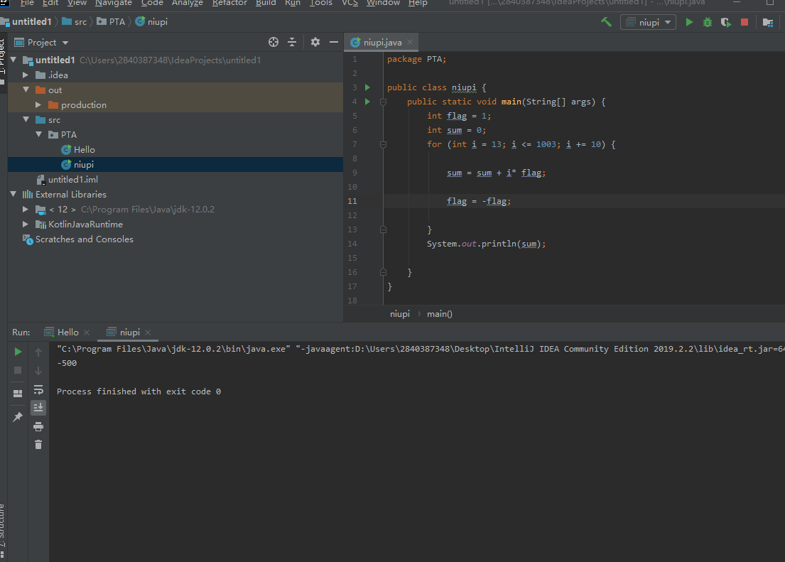 2. 编写Java程序,求13-23+33-43+…+973-983+993-1003的值。