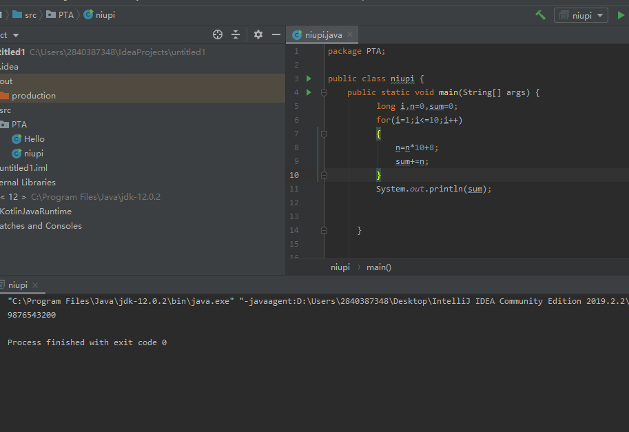 4. 编写Java程序,计算8+88+888+…前10项之和。