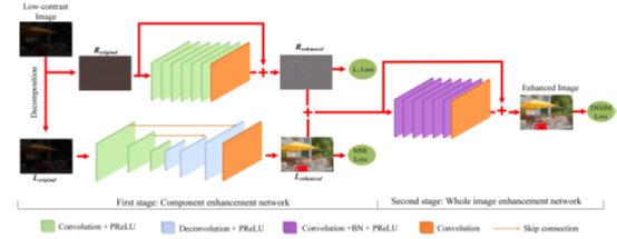 值得一提的是,模型第一阶段的Decomposition步骤采用的是传统方法,而后面介绍的Retinex-Net使用CNN实现了。