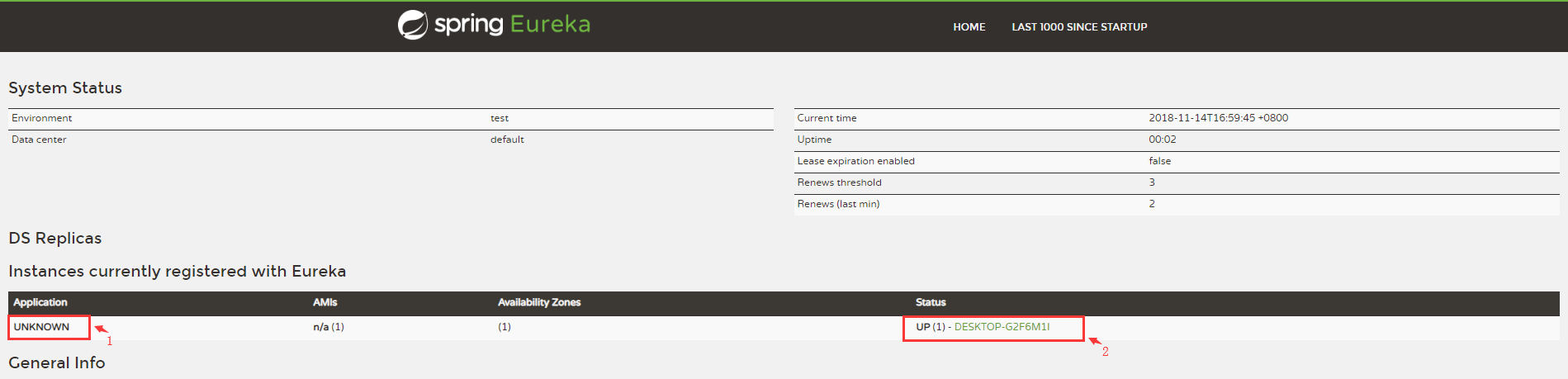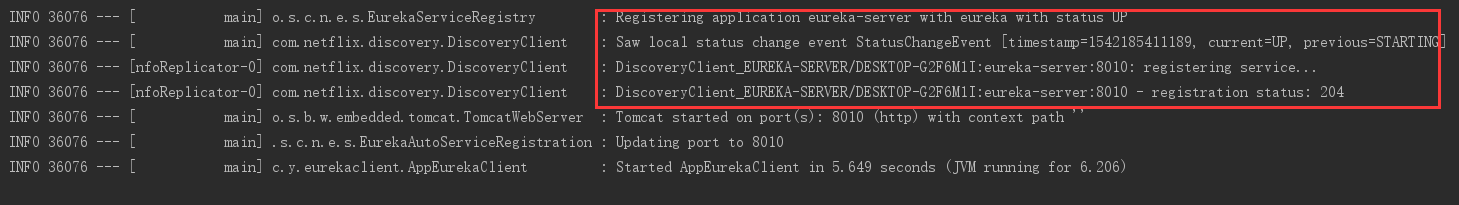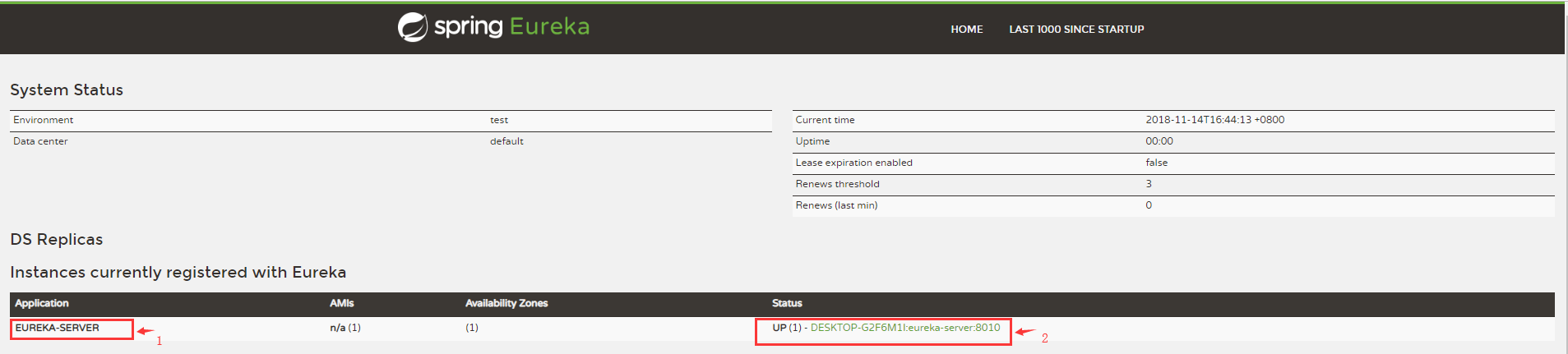 这样Eureka client工程就搭建成功了,首先启动Eureka Server服务,然后启动我们刚才搭建的Eureka client客户端服务,观察控制台打印的信息,启动成功之后在浏览器地址栏输入:http://127.0.0.1:8761,这是会看得到如下界面: