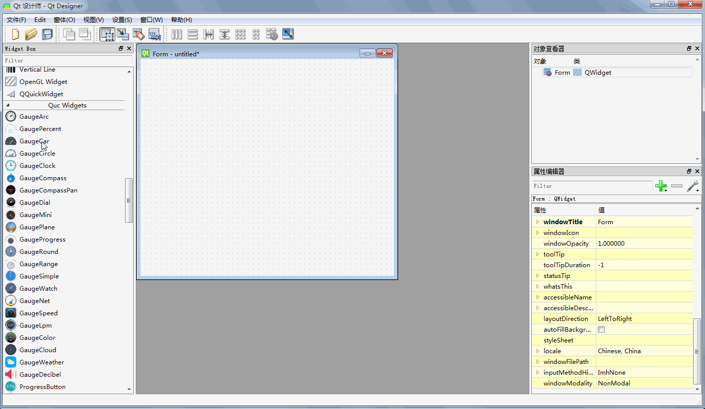 1:快速预览所有控件方法 第一步:前提是qt版本、编译器类型、编译器版本、编译器位数必须完全一致。 第二步:找到qt安装目录的库所在的bin目录,同级有个plugins文件夹,plugins文件夹下有个designer目录,将对应插件文件例如 qt_5_7_1_msvc2013_32.dll 放到此目录即可。 第三步:双击bin目录下的designer.exe,打开提供的demo.ui,即可看到效果。或者新建个空白UI然后从左边的控件栏里面拖动过去。
