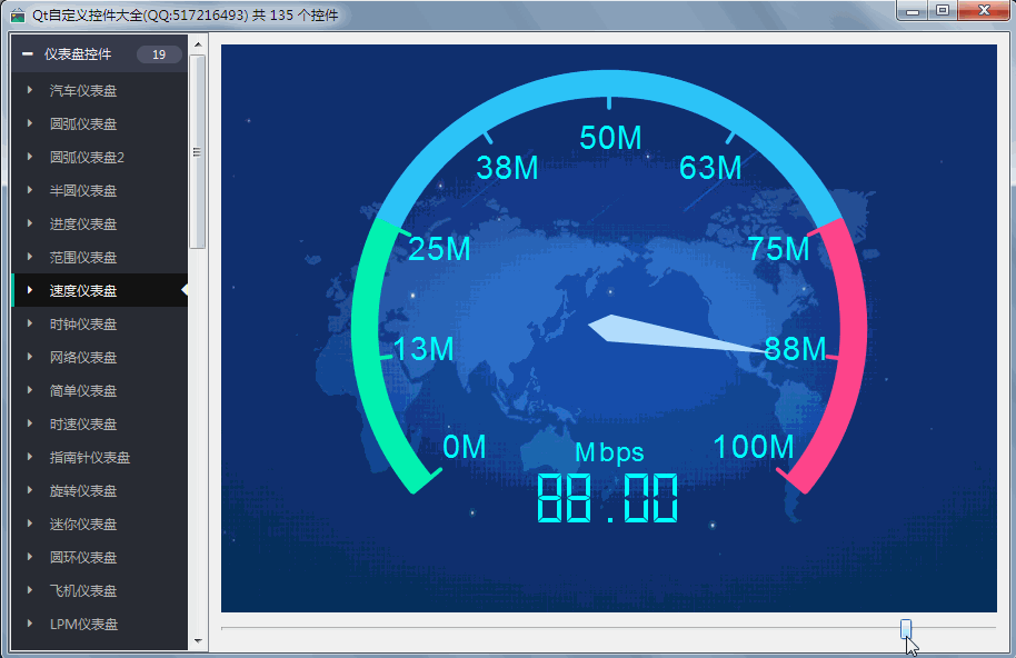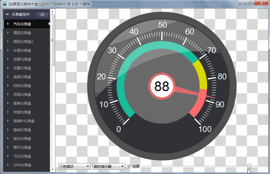 - 超过146个精美控件,涵盖了各种仪表盘、进度条、进度球、指南针、曲线图、标尺、温度计、导航条、导航栏,flatui、高亮按钮、滑动选择器、农历等。远超qwt集成的控件数量。