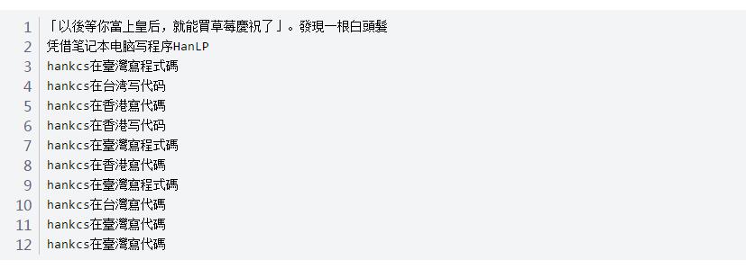 19 |[hankcs, 在, 台湾, 写, 代码]