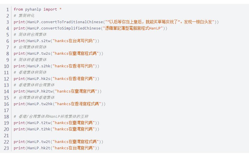 HanLP几乎实现了所有我们需要的繁简转换方式,并且已经封装到了HanLP中,使得我们可以轻松的使用,而分词器中已经默认支持多种繁简格式或者混合。这里我们不再做过多描述。
