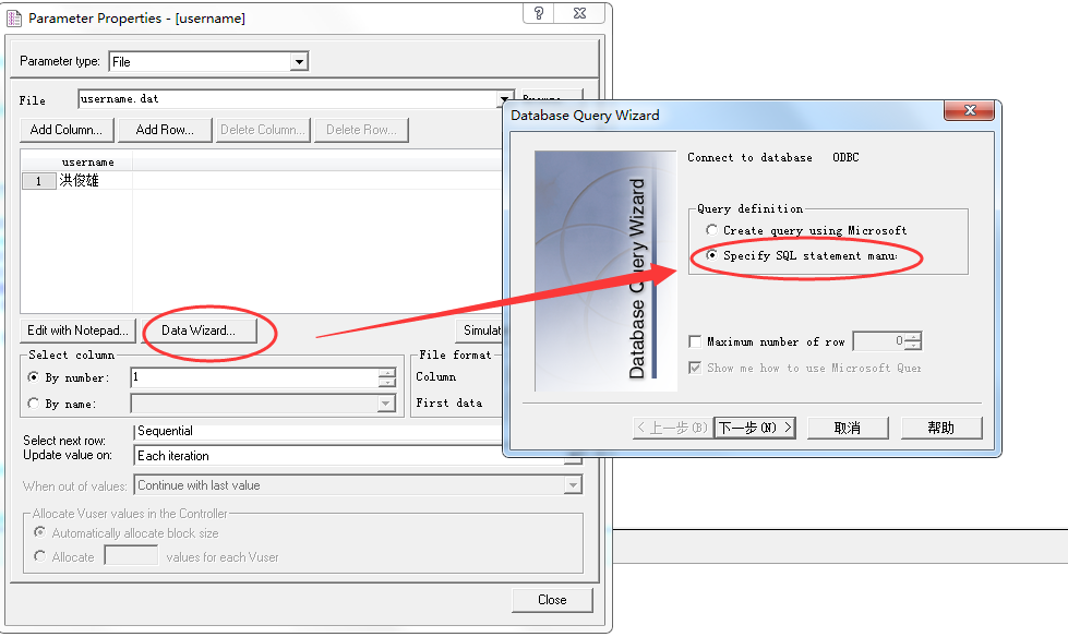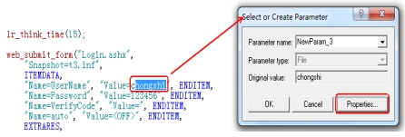 点击“Properites…”会打开编辑用户名参数化窗口。File列表框中,刚才保存用户名信息的文件"username.dat"。