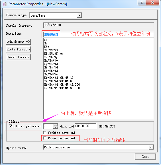 如果我们要参数化的不是一个文件,比如是特定的日期时间,可以从Parameter type 列表中进行选择
