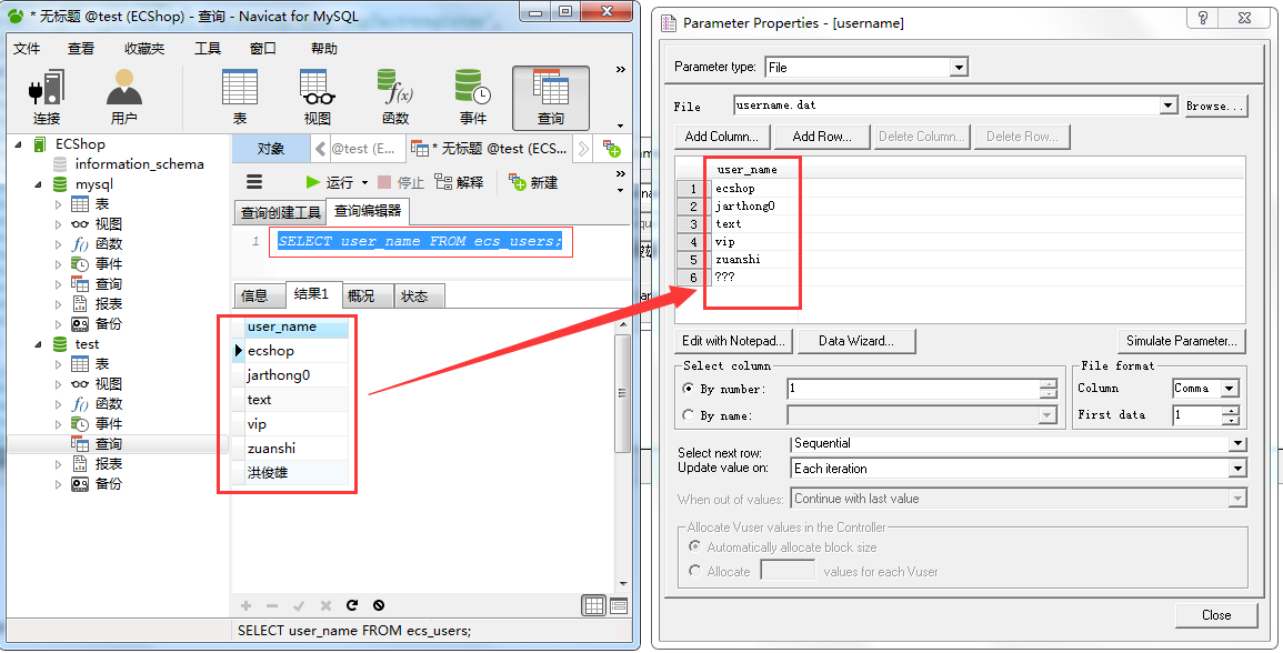 完成之后,我们已经成功对用户名和密码进行了参数化,并且让用户名和密码形成了对应关系。
