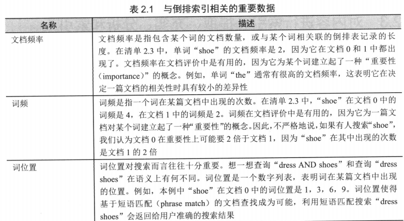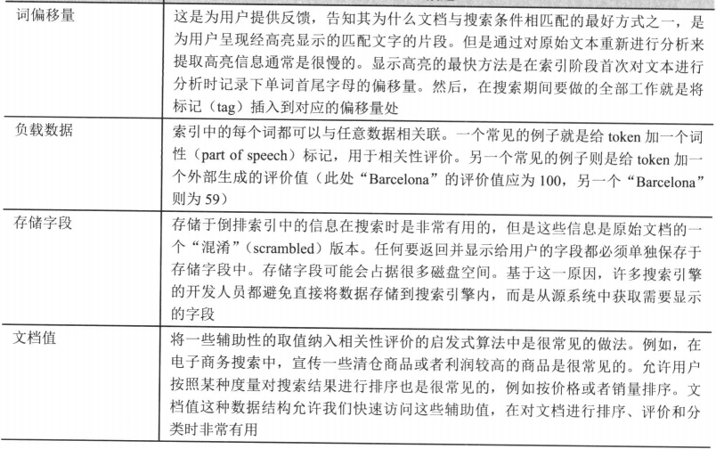 为了让搜索引擎能够提供相关性结果并帮助用户改进查询条件,Lucene在索引中还加入了更多的数据结构和元数据。