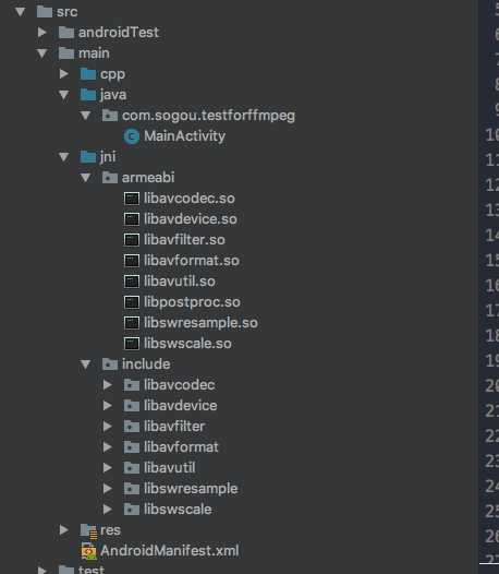 编译完成后运行项目发现直接奔溃了,说ffmpeg的so包找不到,解压apk一看还真是,最终发现设置sourceSets的路径不对,修改如下: