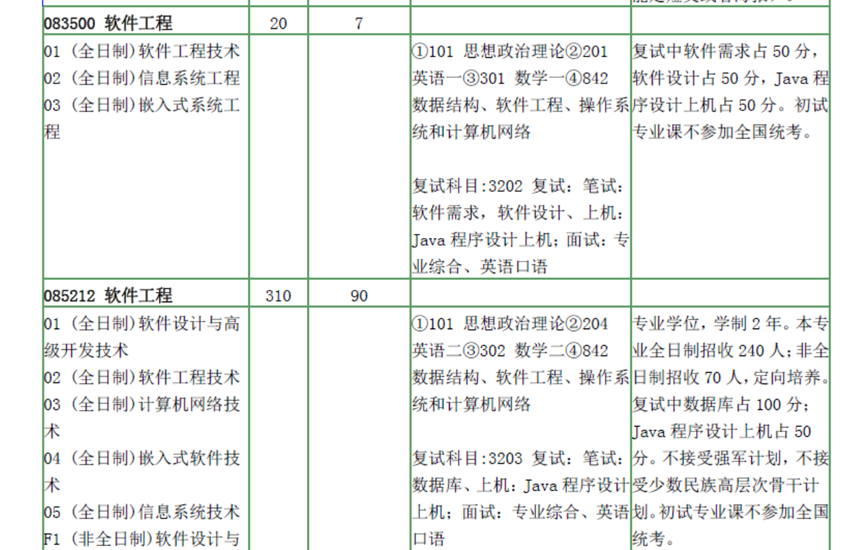 ①101 思想政治理论②204 英语二③302 数学二④842 数据结构、软件工程、操作系统和计算机网络