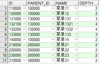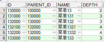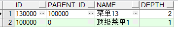 -- (父节点)id为1321的菜单,以及1321菜单下的所有直接或间接父菜单(prior、parent_id(等号左边) 都在左边) select * from menu start with id='132100' connect by prior parent_id = id; -- prior 后面跟的是(parent_id) 则是查找父节点,prior后面跟的是(id)则是查找子节点
