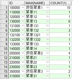 --根据菜单组分类统计每个菜单包含子菜单的个数 select id, max(name) name, count(1) from menu group by id connect by prior parent_id = id order by id