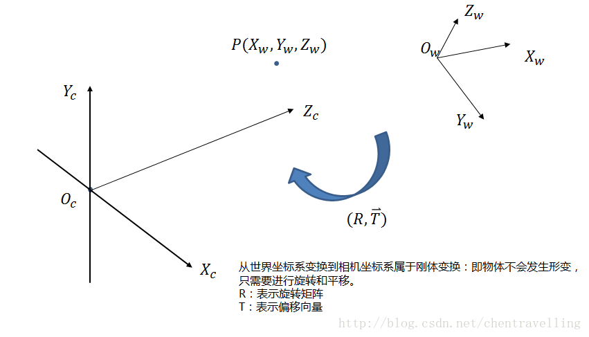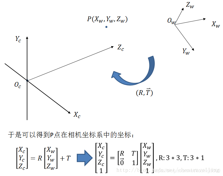 那么从世界坐标系到相机坐标系的转换关系如下所示: